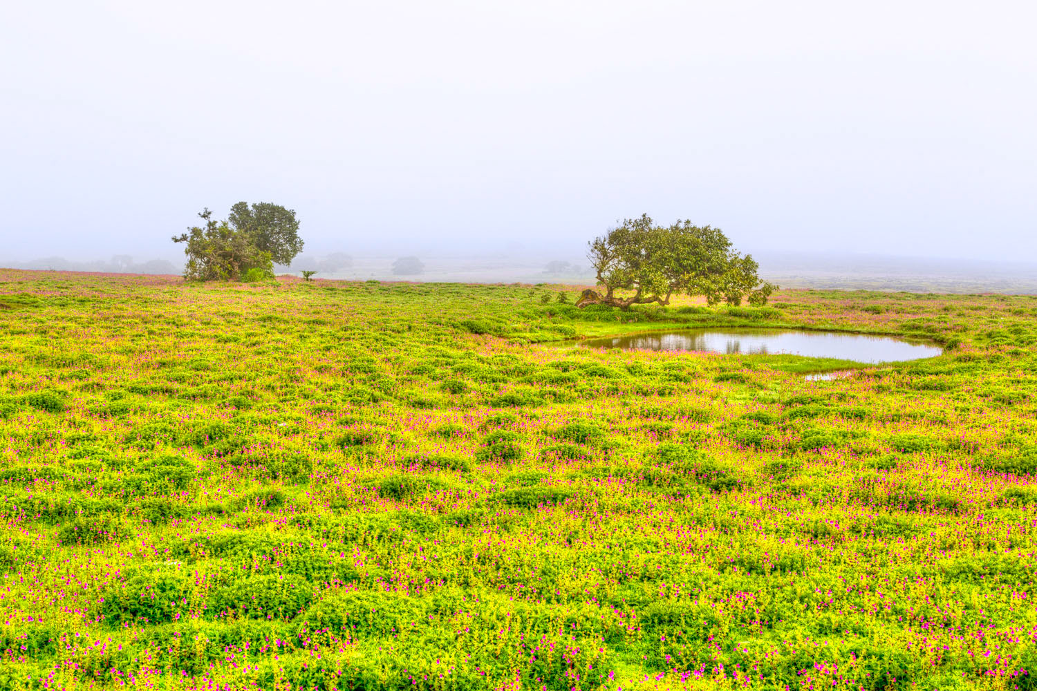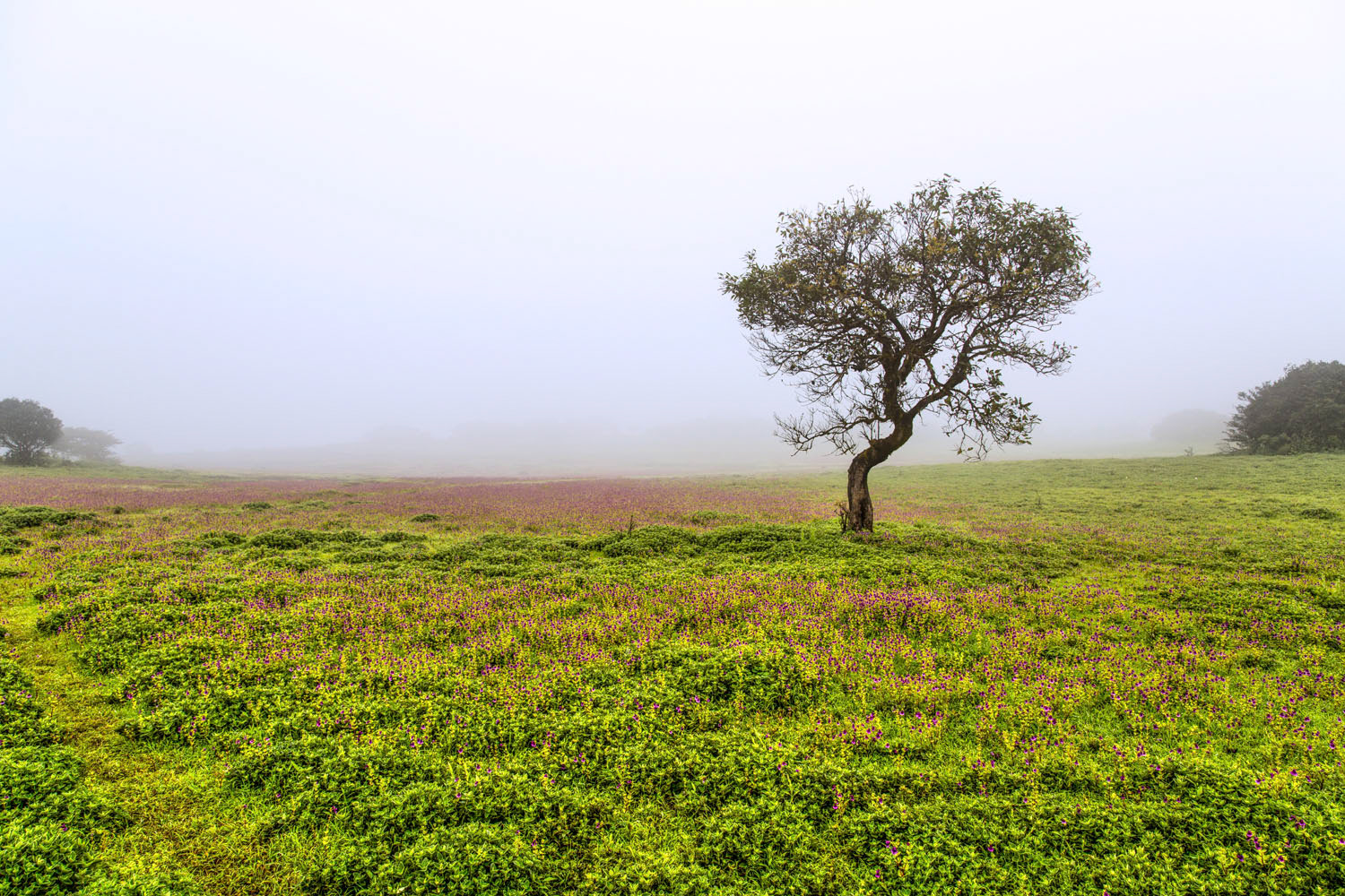 The sun shines through the fog at Bhadra Wildlife Sanctuary, Karnataka